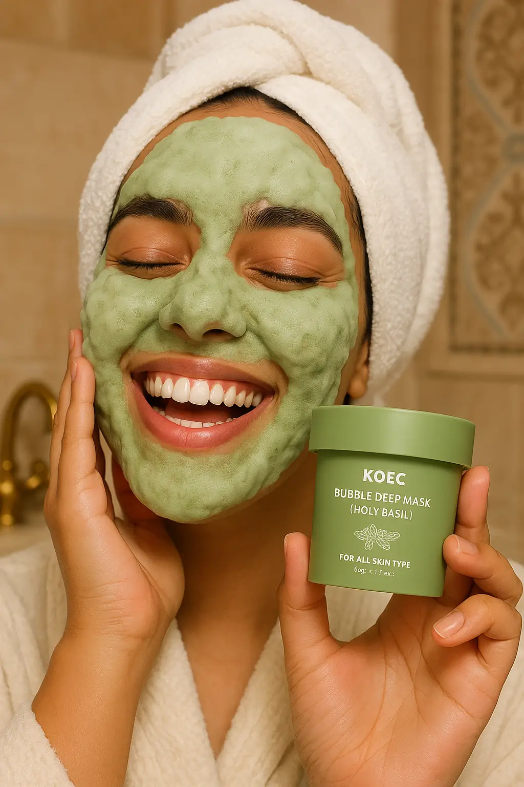 ماسك الفقاعات الأخضر هو إحدى هذه الابتكارات: تركيبة فريدة تتحوّل من طين إلى فقاعات ناعمة تنظّف بشرتك بعمق، بدون أي تهيّج أو جفاف.