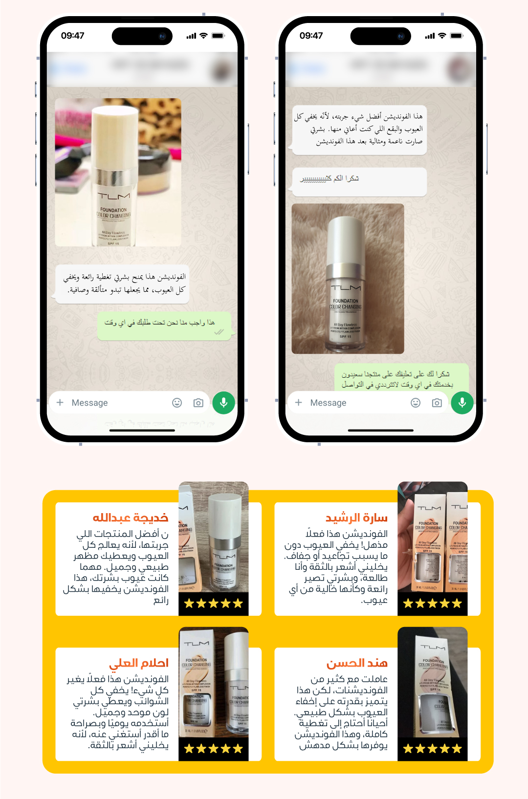 أنا أعاني دائمًا من اختيار الدرجة المناسبة للفاونديشن، ولكن اللؤلؤة البيضاء السحرية TLM أنقذتني! إنها تنسجم تمامًا مع بشرتي وتمنحني مظهرًا طبيعيًا.