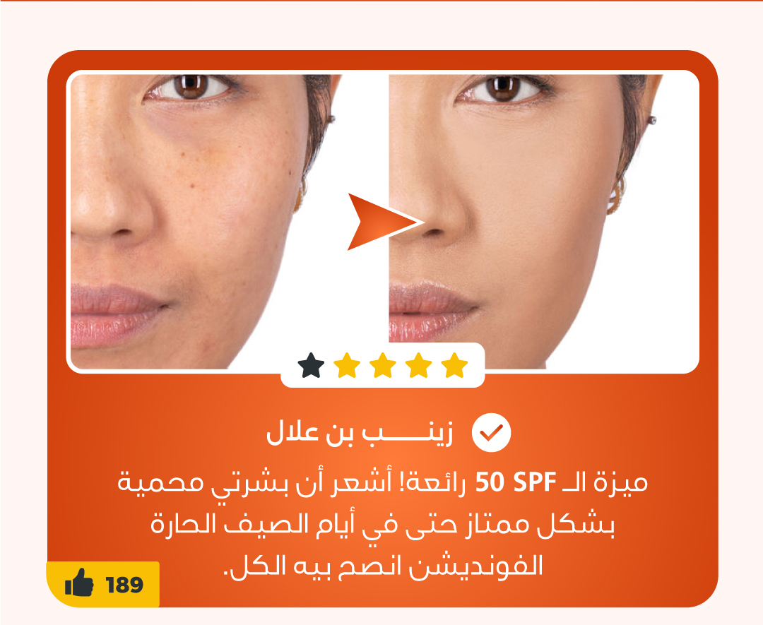 أخيرًا وجدت الفاونديشن المثالي! سهل الاستخدام، ويدوم طويلاً دون أن يتكتل. أنصح به لكل من يبحث عن تغطية جيدة وطبيعية.